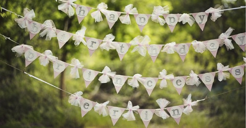 Princess party paper plate bunting is a big hit on Pinterest, I thought I’d add another fun idea from that same party, master-minded by my wildly talented aunt. So many clever ideas from the birthday party she threw for her 5 year old grand baby, it’s hard to choose (I may just add more later, you’ll have to come back to see </blatent tease>). For today, your princess party tidbit is the banner she made to welcome the mini princesses to the party and celebrate Erin’s birthday.